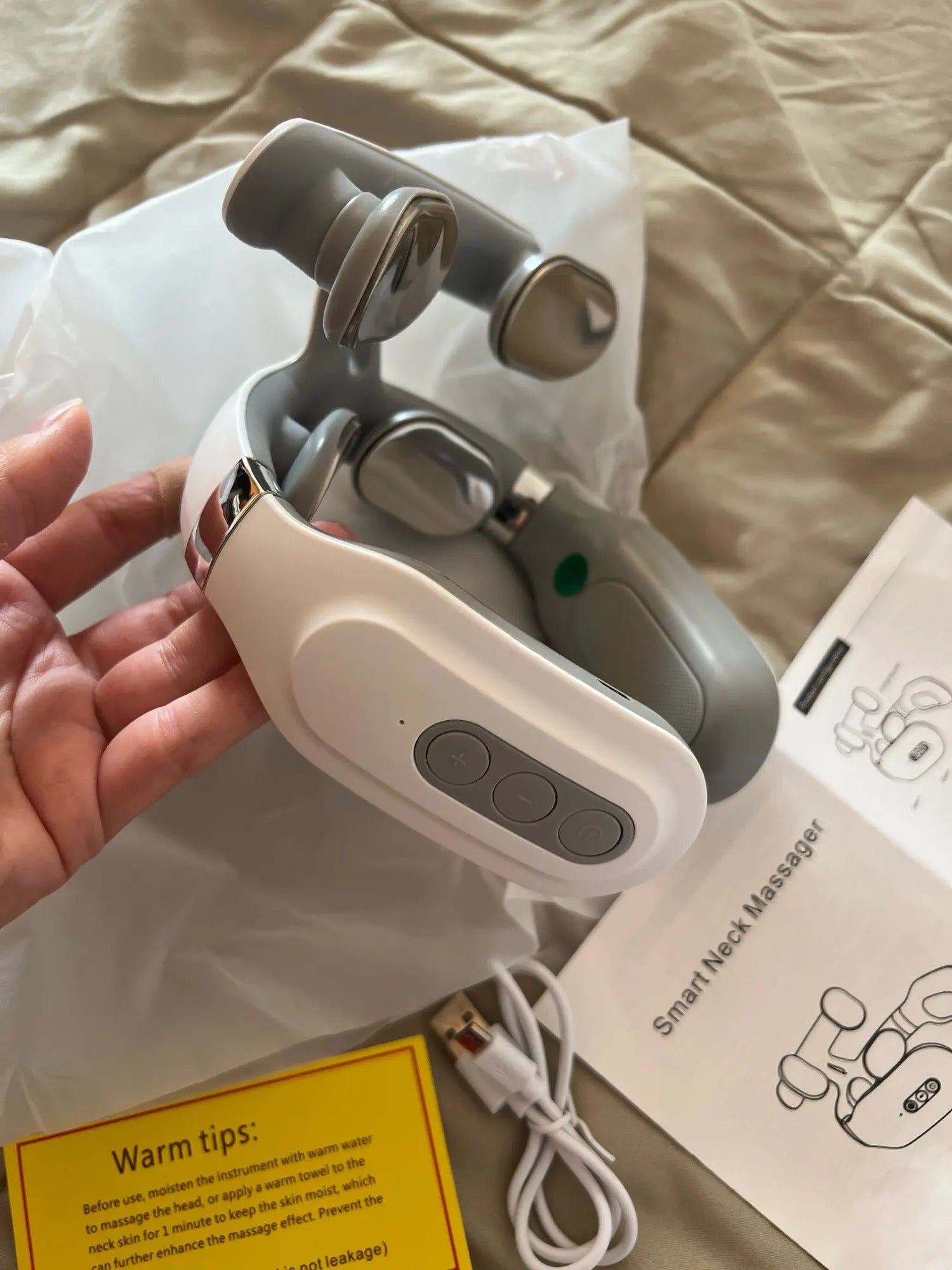 Soothe neck pain and release tension with our Smart Neck Massager. Featuring intelligent heat therapy and pulse technology, it mimics real massage techniques to improve blood circulation, reduce stiffness, and promote total relaxation. Perfect for use at home, in the office, or while traveling.