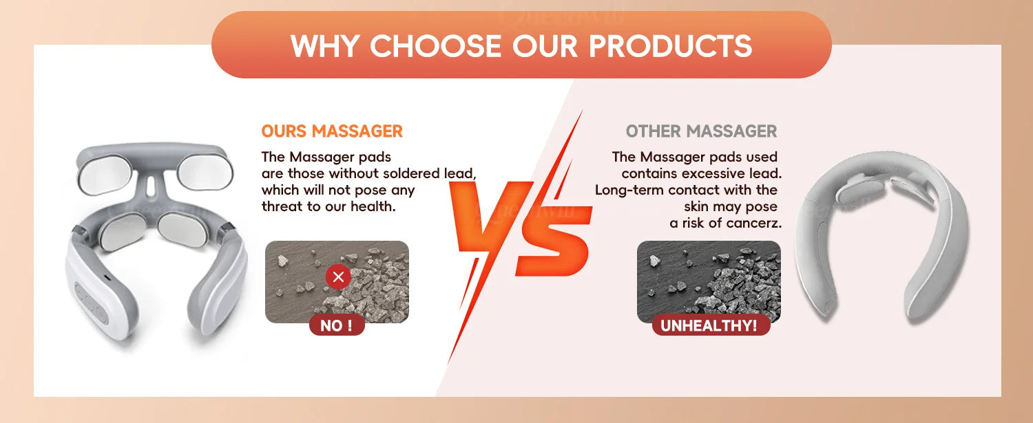 Soothe neck pain and release tension with our Smart Neck Massager. Featuring intelligent heat therapy and pulse technology, it mimics real massage techniques to improve blood circulation, reduce stiffness, and promote total relaxation. Perfect for use at home, in the office, or while traveling.